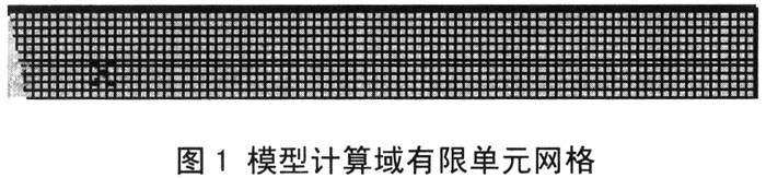 利用板坯截面的中心对称性取1/4截面建模。模型计算域的有限单元网格如图1所示。在模型中,板坯中心线为X,Y轴线,按绝热边界条件处理;结晶器和空冷区给出求解域边界上的热流密度,按第2类边界条件处理;水冷区给出求解域边界上的热交换系数,按第3类边界条件处理。