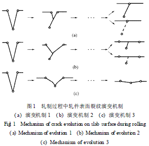 ( 3) 对轧制过程轧件表面裂纹演变行为进行了分析, 讨论了轧制过程轧件表面裂纹消除的主要演变机制。