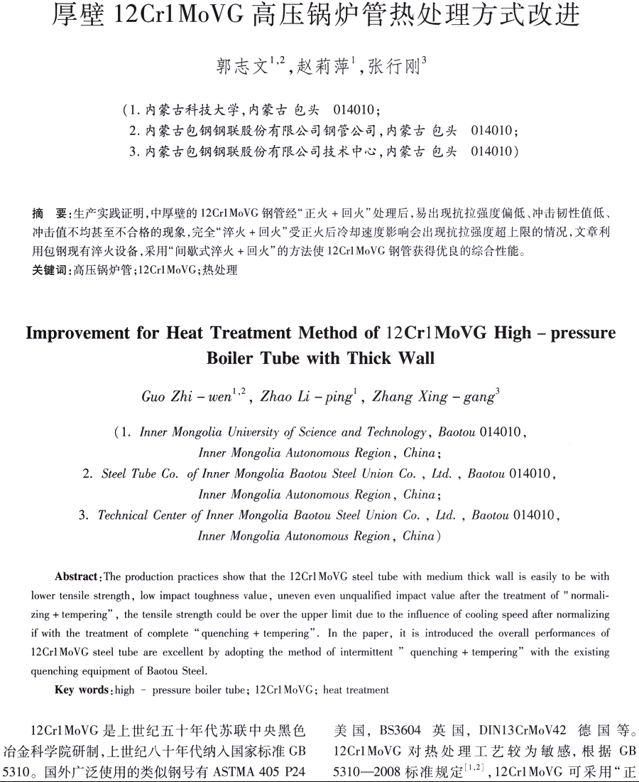 厚壁 12Cr1MoVG 高压锅炉管热处理方式改进