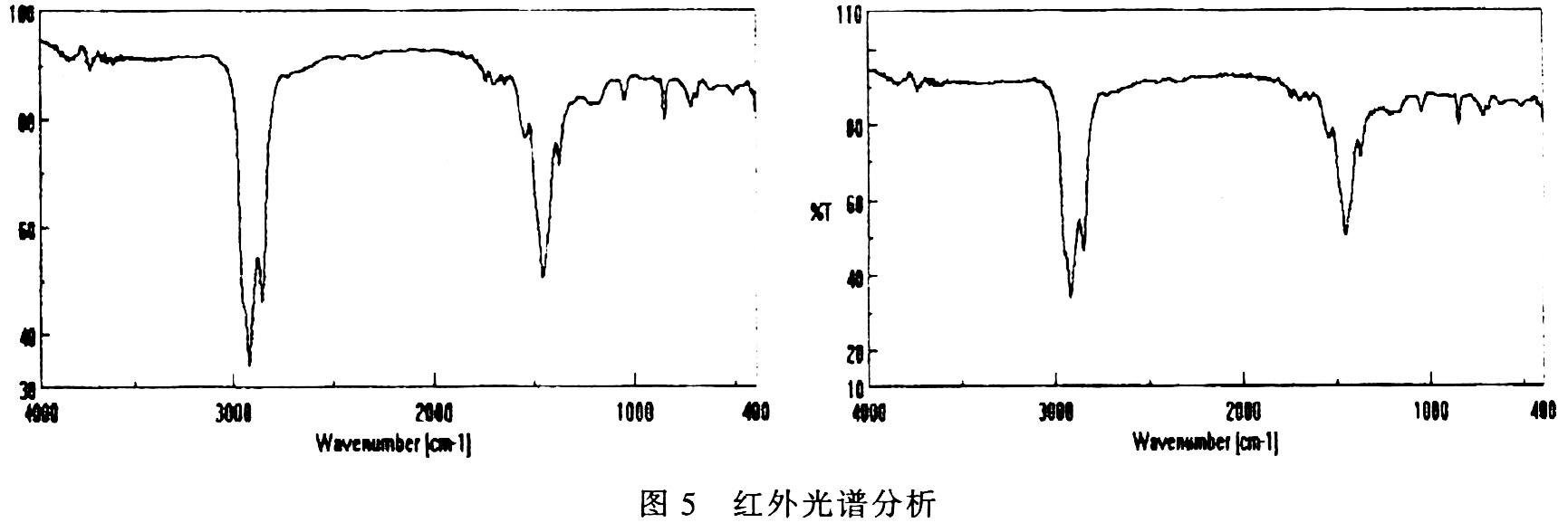 但是涂有平整液A的冷轧板在用户处冲压成零件后却引发了大面积成片状锈蚀,后经我们在实验室研究发现这正是由于平整液A与后道工序所用防锈油的兼容性有欠缺造成的,我们通过红外光谱法把平整液与防锈油混合后的析出物与平整液中添加剂与防锈油中防锈添加剂析出物做比较后发现(见图5),两者红外光谱析出峰基本一致,平整液A配方中的添加剂与防锈油中防锈添加剂发生复分解反应生成沉淀,引起防锈添加剂在油相中溶解度减小,从而使防锈添加剂从油相中析出生成沉淀,造成防锈添加剂减少,引起防锈性能的下降,尤其在高温高湿气候下,再加上大气污染,由于平整液与后道工序所用防锈油兼容性差而引起的冷轧板防锈能力降低的问题更会凸现出来。