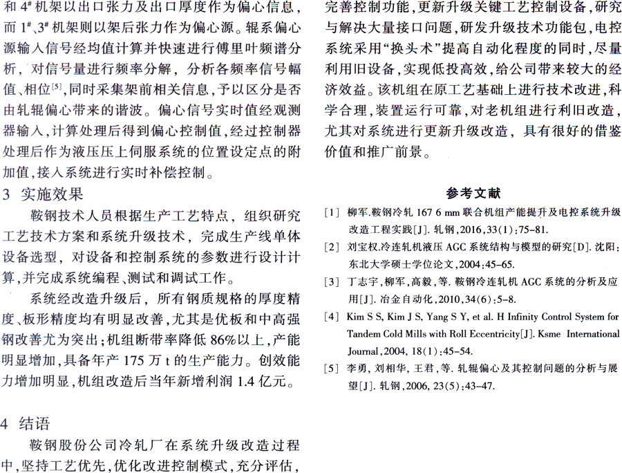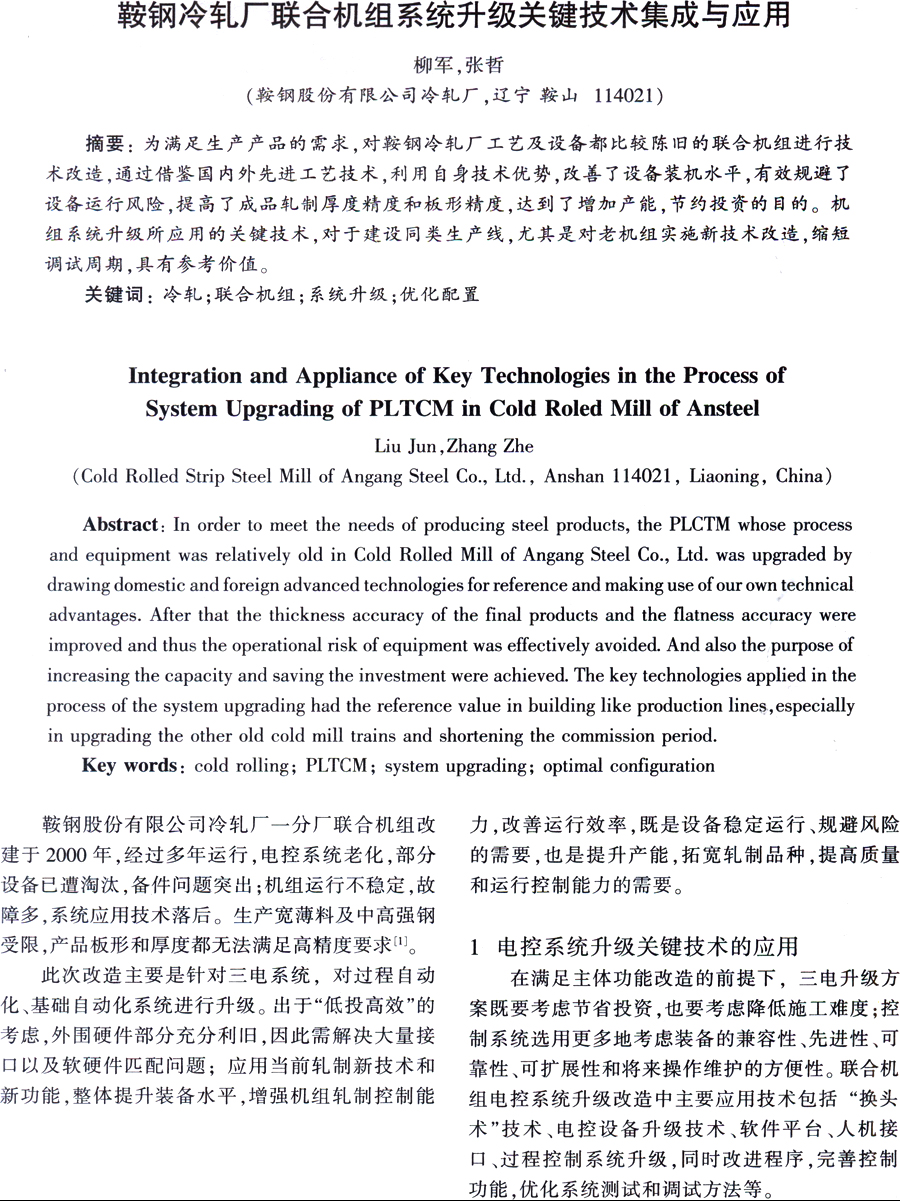 鞍钢冷轧厂联合机组系统升级关键技术集成与应用