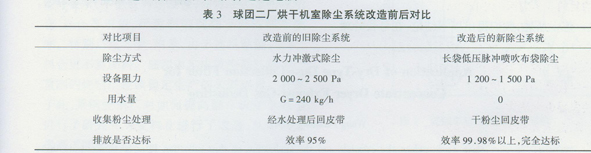 球团二厂精矿烘干机室除尘系统改造前后的对比列于表3。