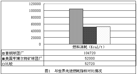 由图1可以看出,在同为链篦机-回转窑-环冷机氧化球团生产工艺和原料均为磁铁精矿粉的条件下,我国燃耗先进水平与世界较先进的水平相比,仍然高达一倍以上。由此,随着我国球团工业的深入发展,能源紧缺的局面将进一步严峻,也制约着氧化球团制造成本的降低和综合经济效益的提高。