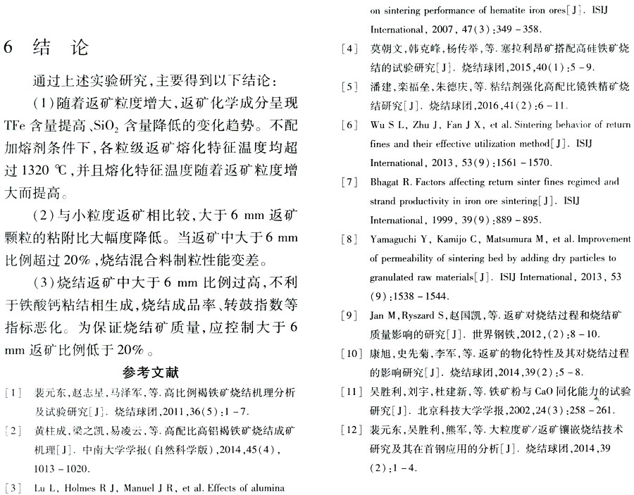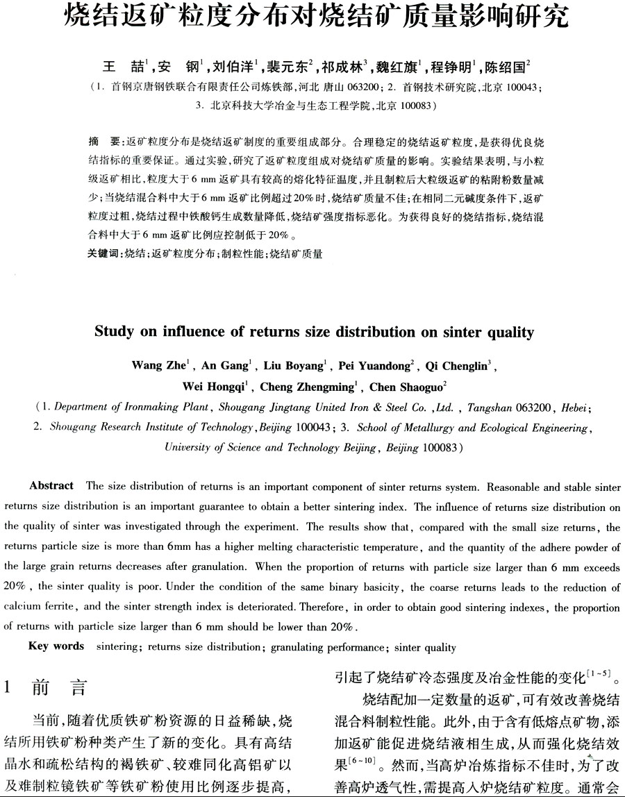 烧结返矿粒度分布对烧结矿质量影响研究