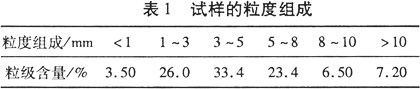 试验用料采用烧结现场混合料,取至混合料矿槽上料平台处。试样的粒度组成见表1。