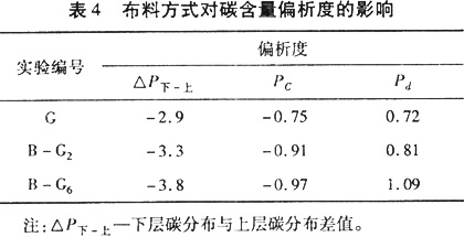 (3)碳的偏析度由多辊布料器的0.75提高到板—辊联合布料器的0.91~0.97,提高幅度为21.13%一29.33%。
