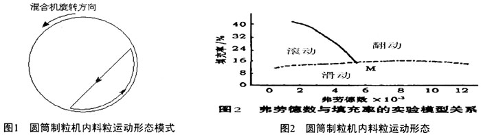 混合机的转速决定着物料在圆筒内的物料运动状态,混合机内物料的运动状态分为3种——滑动、滚动、翻动(翻动状态包括瀑布式落下、抛射坠落等剧烈运动状态)。