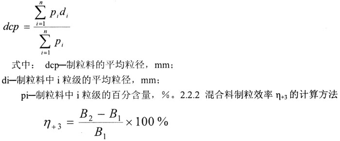 以混合料的平均粒度dcp、+3mm粒级的增量和-1.0mm粒级的减少量来评价其制粒效果。混合料的平均粒度: