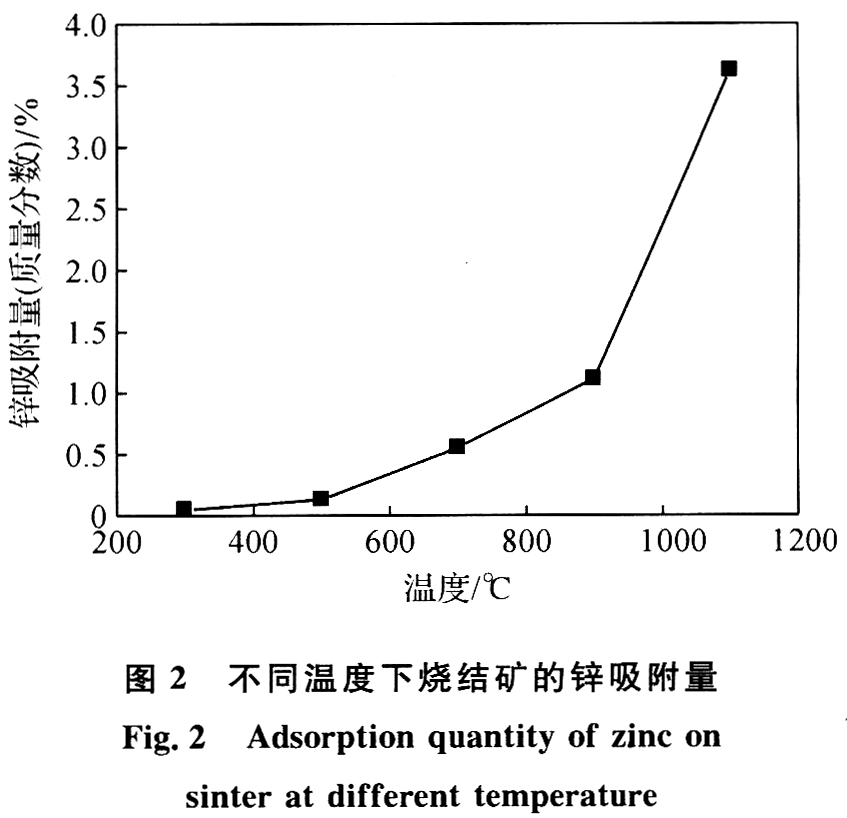 2.1 温度对烧结矿球团矿锌吸附的影响