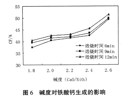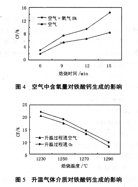 从表3和图3还可见:在配碳、焙烧温度相同时,随着焙烧时间的延长,铁酸钙含量增加。1