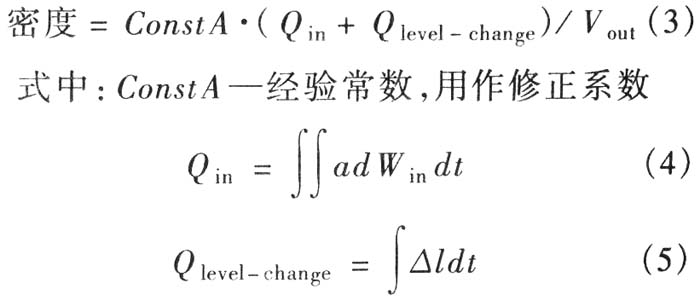 密度=修正系数×(进入料槽的混合料累计质量+该时间内料位的变化量)/累计输出的体积 (2)