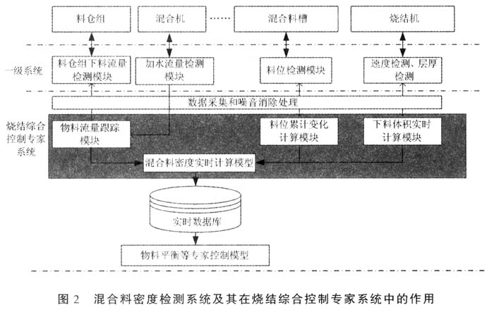 混合料密度检测系统及其在烧结综合控制专家系统中的作用如图2所示。