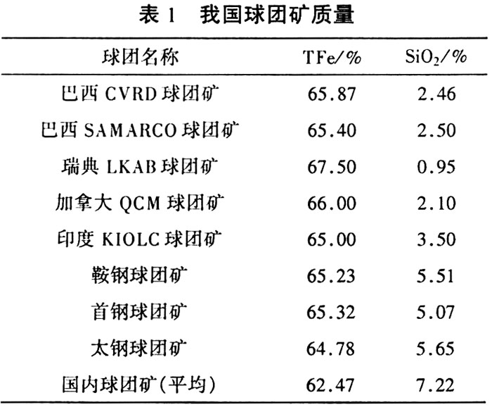 随着国内球团矿生产规模的扩大,大量的使用进口铁精矿粉势在必行,进口铁精矿粉的使用有助于改善我国球团矿生产的原料条件。特别是进口铁精矿粉大部分为高铁、低硅型铁矿粉,对于改善我国球团矿的质量具有重要的作用。