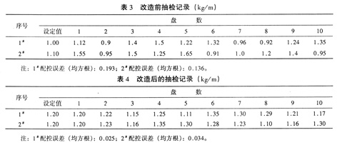 表3、表4为改造前后的生石灰下料情况。