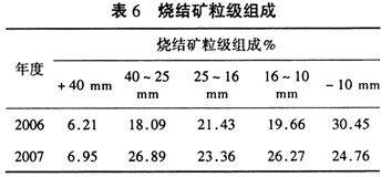 通过一系列技术改进,烧结矿粒级组成趋于合理。表6为烧结矿粒级组成。