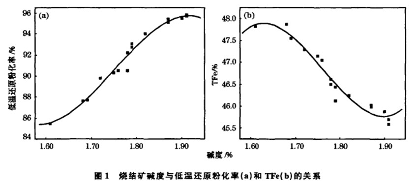 综上分析可知,在一定的碱度范围,随着碱度增加,低温还原粉化率提高。