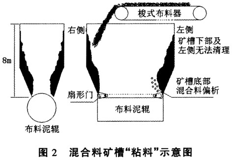 2.4 混合料矿槽容积大及梭式布料器的缺陷