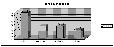 正常生产情况下,使用普粉烧结机利用系数在1.8t/m2.h左右;配吃大比例FMG粉烧结后,由于机速下调、FMG含结晶水,残存量降低,烧结机利用系数下降到1.65t/m2.h左右,约比以前下降8%左右(烧结机能力大小不宜,烧结机产量一般下降都在5-10%)。