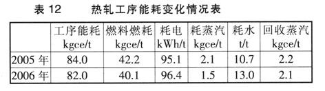 热轧工序能耗下降2kgce/t,主要得益于燃料、蒸汽消耗水平下降。2006年是热轧产量快速增长的一年,其增幅达25%。有些生产线处在投的、达产阶段,水耗和余热回收水平偏低。具体能耗数据见下表12。