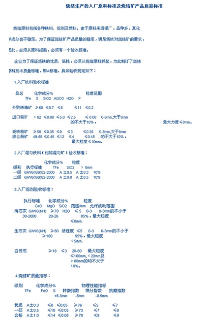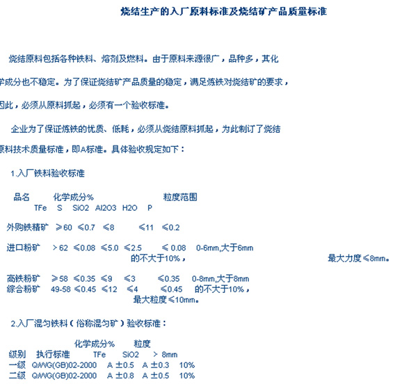 烧结原料的标准