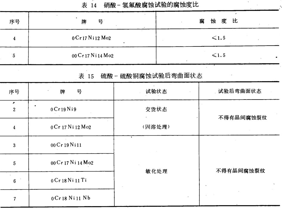 3.4.1.4 硝酸一氢氟酸腐蚀试验,适用的牌号及其腐蚀度比应符合表14规定。