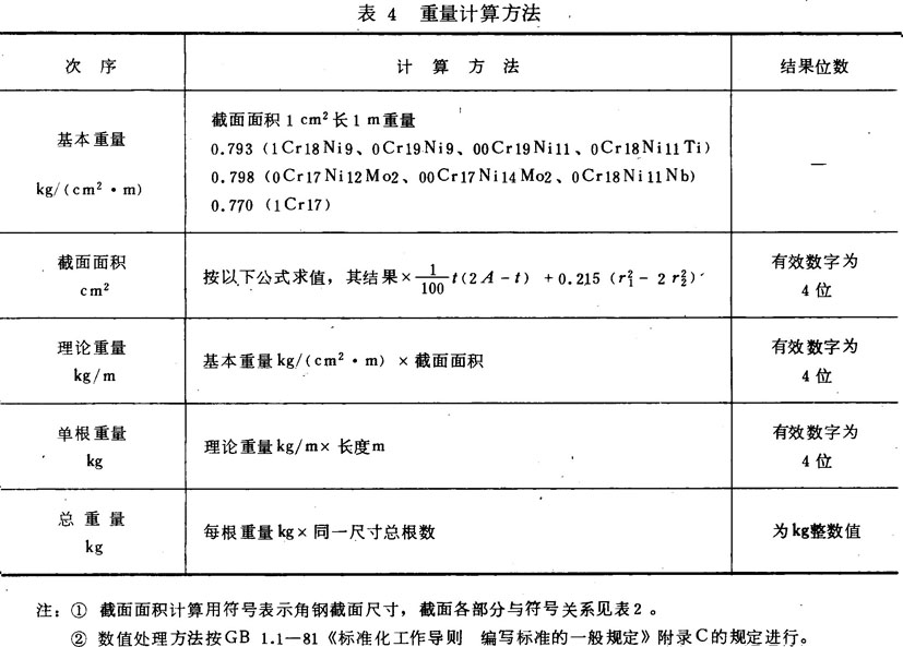 2.6.3按表2规定计算得到角钢标准截面尺寸,其相应的截面面积和理论重量见表4。