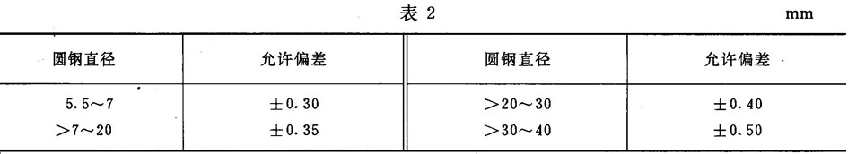 3.1.2圆钢直径的允许偏差应符合表2规定。