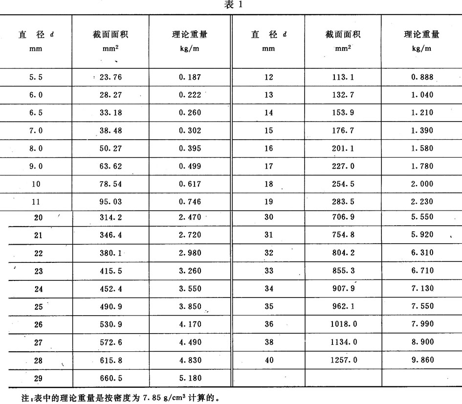 3.1.1 圆钢的直径i截面面积、理论重量应符合表1规定。