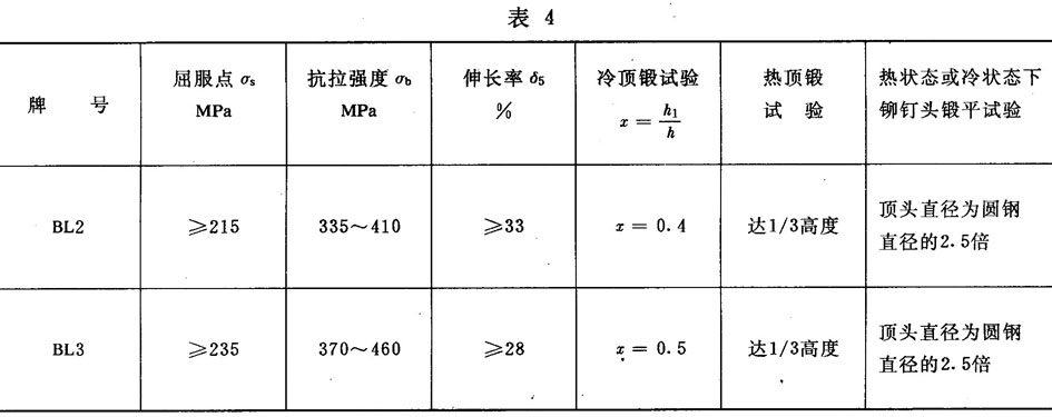 4.4.5根据需方要求,并在合同中注明,制造铆钉用碳素钢热轧圆钢还应按表4规定进行冷状态或热状态下铆钉头锻平试验。