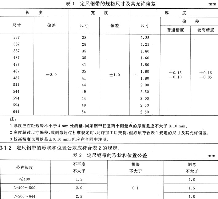 3.1.1 定尺钢带的规格尺寸及其允许偏差应符合表1的规定。