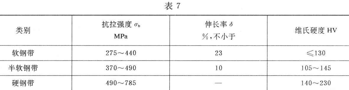 5.2钢带的抗拉强度和伸长率应符合表7中的规定。