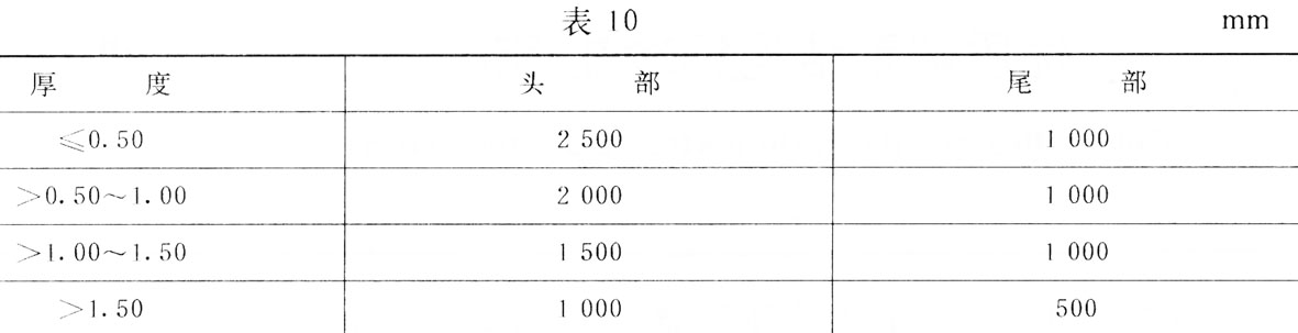 7.2不切头尾钢带,头尾不作考核部分长度应不大于表10中的规定。