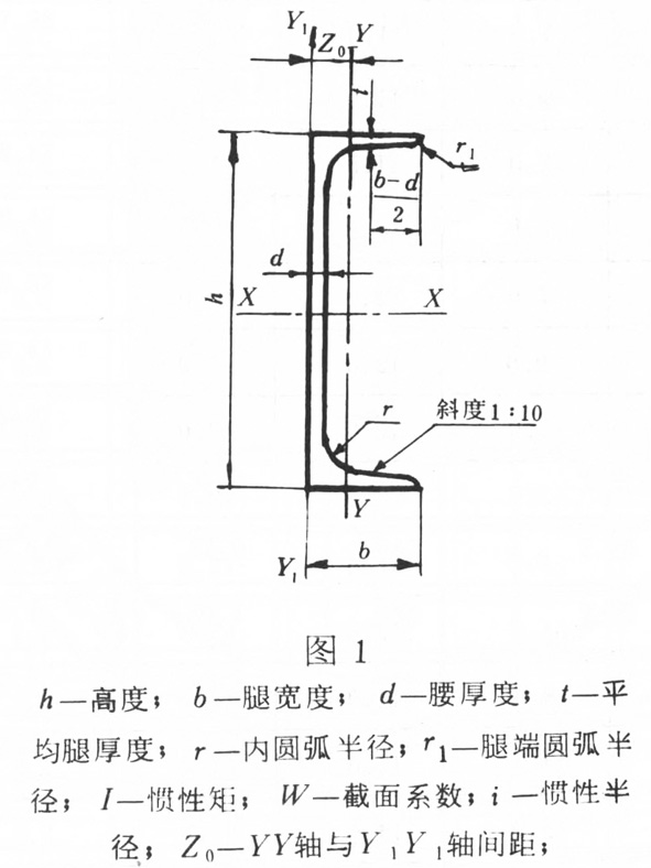2.1.1 槽钢的截面图示及标注符号如图l所示。
