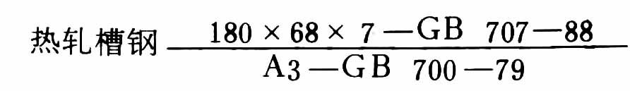 普通碳素钢甲类3号镇静钢,尺寸为180mm×68mm×7 mm的热轧槽钢标记如下: