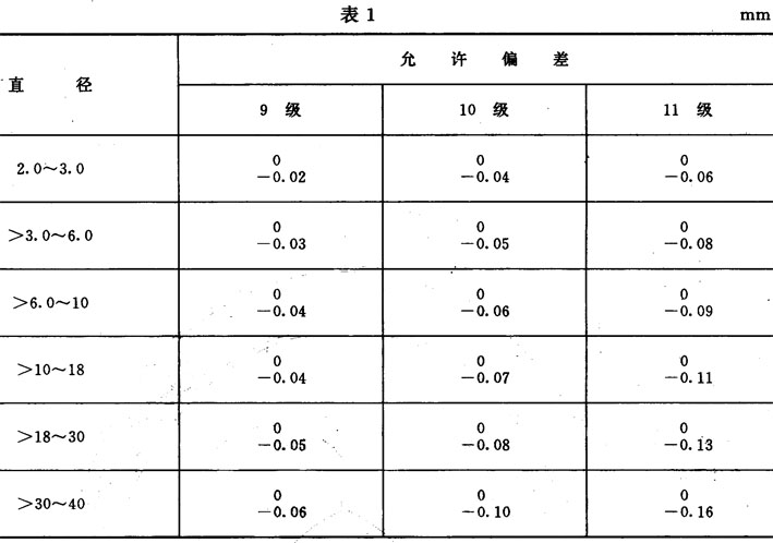 4.1 冷拉钢的直径范围为2~40 mm,直径允许偏差应符合表1中10级的规定,按其他精度等级交货时应在合同中注明。
