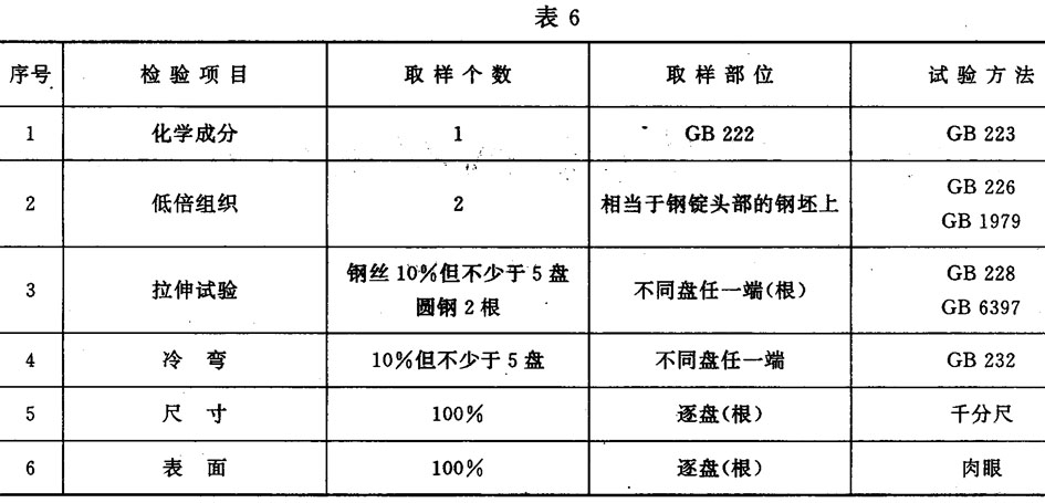 每批钢材的取样数量、部位及试验方法应符合表6的规定。