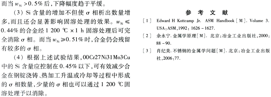 Si含量对00Cr27Ni31Mo3Cu合金组织性能的影响