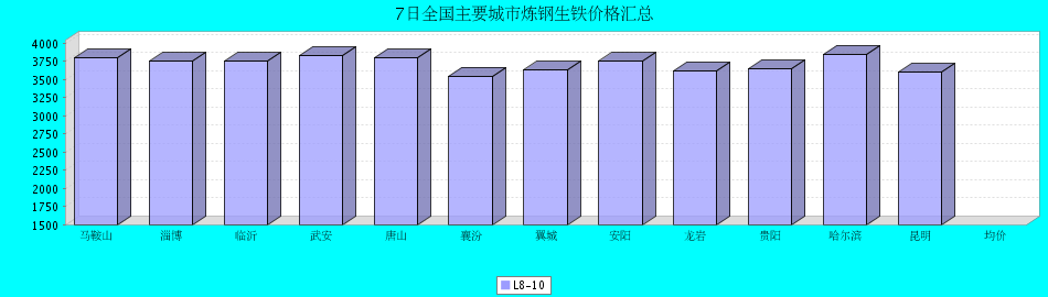 | 炼钢生铁 | 马鞍山 | 淄博 | 临沂 | 武安 | 唐山 | 襄汾 | 翼城 | 安阳 | 龙岩 | 贵阳 | 哈尔滨 | 昆明 | 均价 |